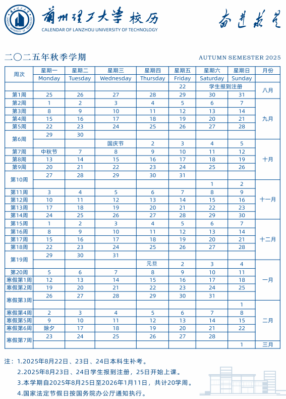 2025年秋季学期校历